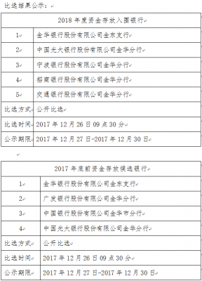 2018年度資金存放入圍銀行及2017年底前資金存放銀行比選結果公示