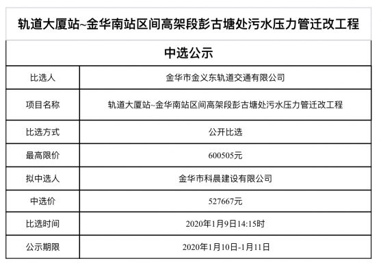 金華市金義東軌道交通有限公司運(yùn)營35kV王塘變電所2026年市場化購電項目中標(biāo)候選人公示