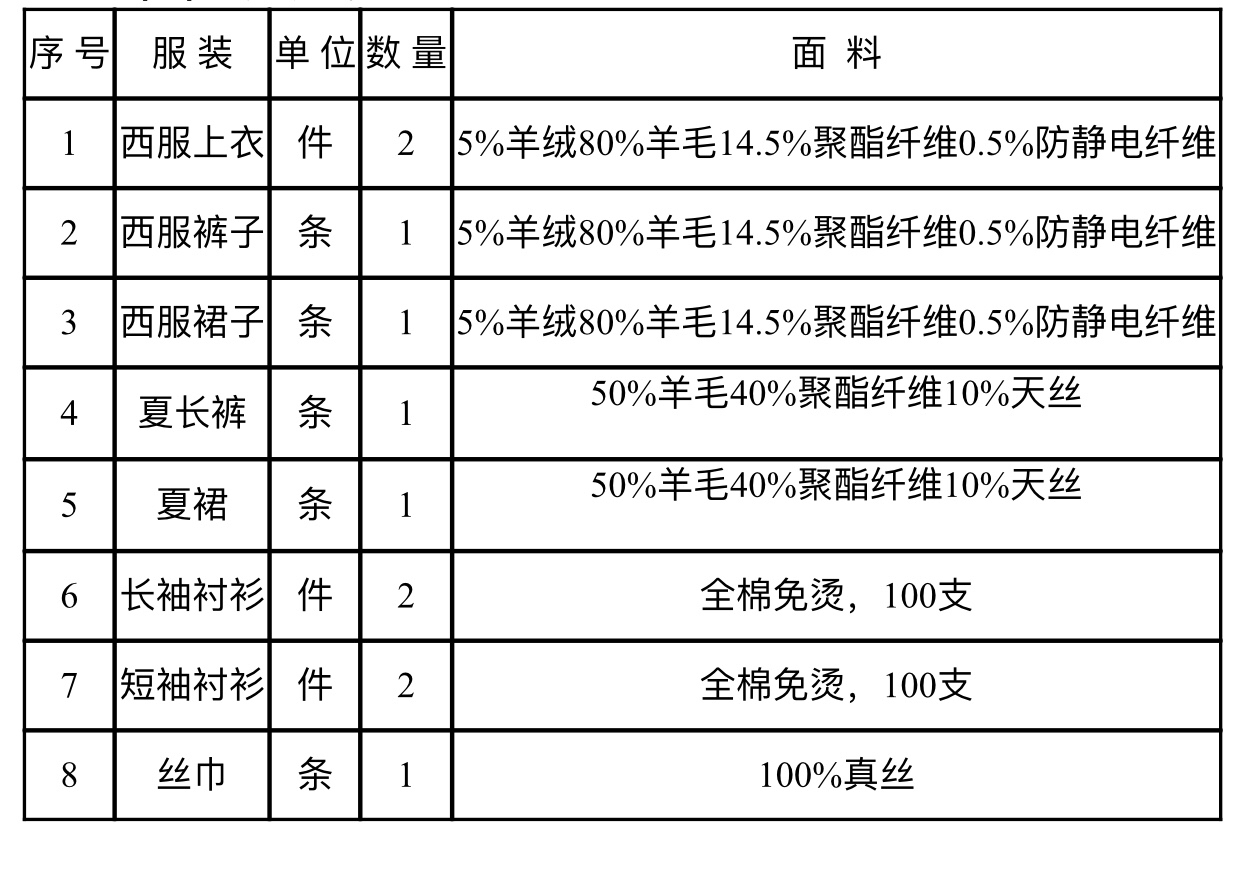 4.具有國(guó)內(nèi)機(jī)關(guān)、企事業(yè)單位類(lèi)似服裝制作單個(gè)合同金額在100萬(wàn)以上的業(yè)績(jī)。
