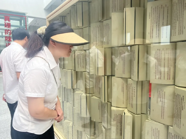 站外,外墻浮雕和廣場(chǎng)雕塑共同訴說著“真理味道 信仰之源”的故事。第一部中文版《共產(chǎn)黨宣言》的翻譯全過程,在這里得到詳盡展示。點(diǎn)點(diǎn)燈火代表星星之火,中間的書本正是《共產(chǎn)黨宣言》,翻動(dòng)的書頁,正是點(diǎn)亮世界的真理力量。