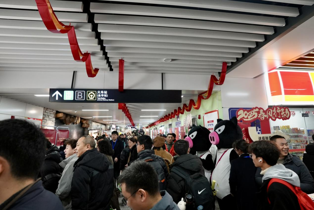 此次活動包含“創(chuàng)在金華、購在金華、美在金華、福在金華”四個主題,涵蓋返鄉(xiāng)暖心服務(wù)、寫福送福、年貨節(jié)、攝影作品展等多項內(nèi)容,旨在把城市溫度和溫馨服務(wù)送到每一位乘客心中。